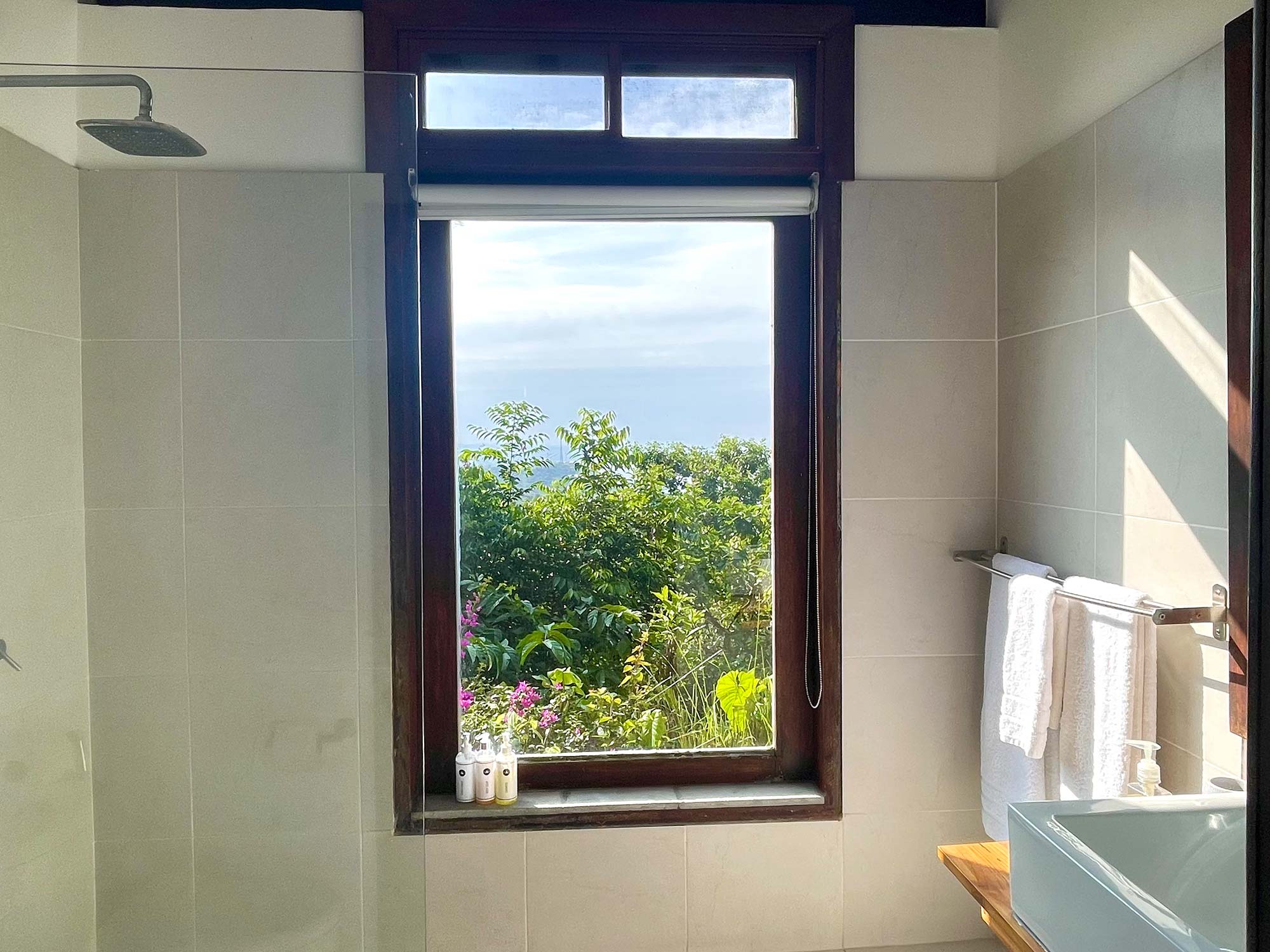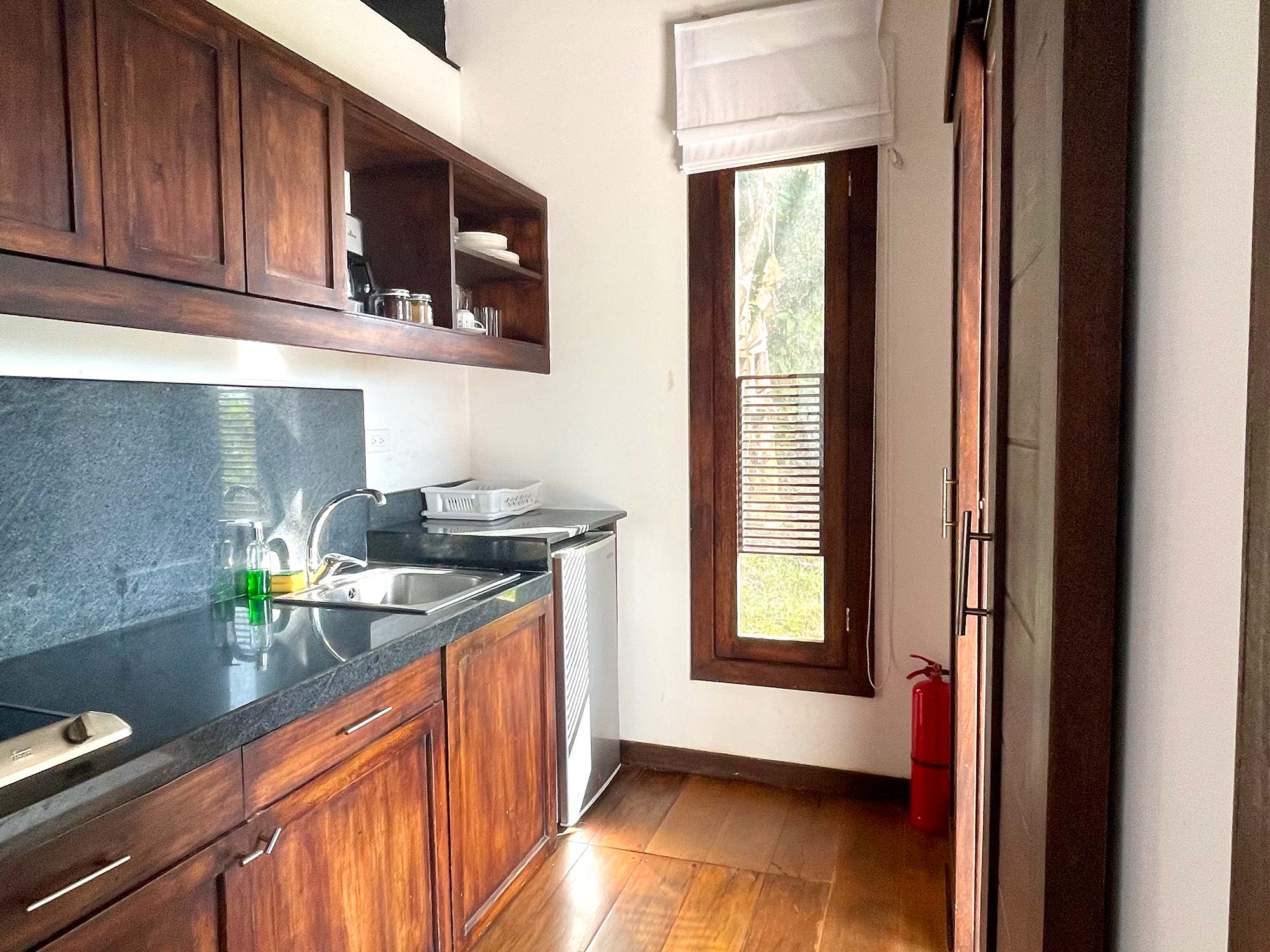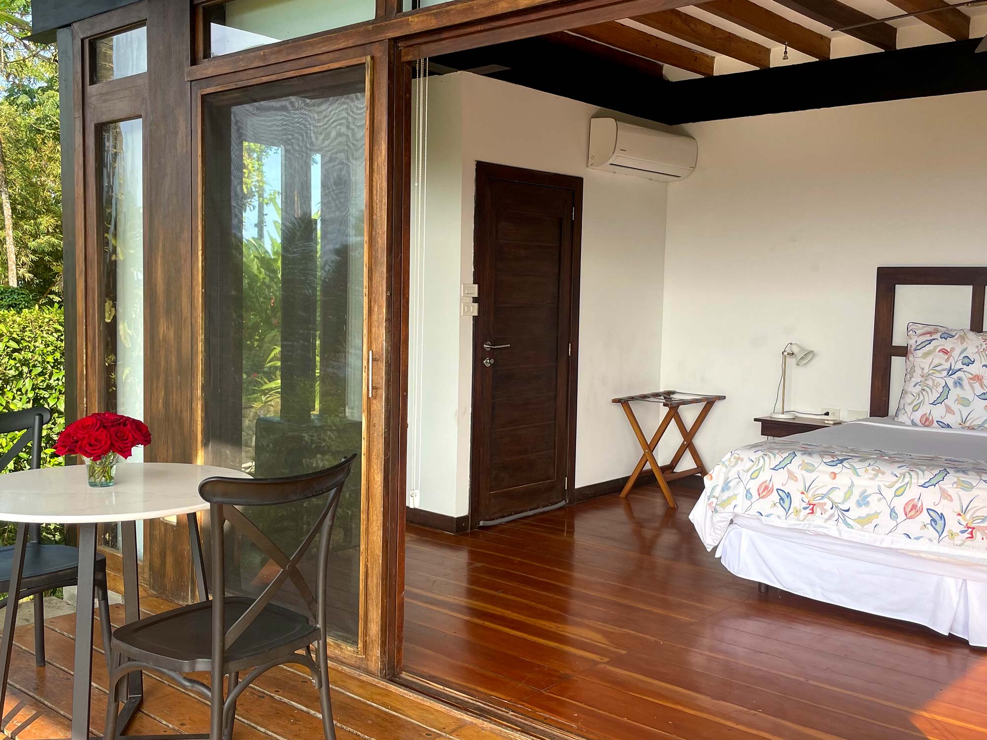 En el Loft 3 tienes una cama King size, un sofá/cama, un baño con ventanal para disfrutar la excelente vista, un kitchenette (2 ornillas de inducción, cafetera, mini refrigerador y utencilios básicos; NO tiene horno, microondas, ni licuadora), Chimenea tipo estufa, closet, A/C, agua caliente, Plasma de 45″, DirectTV HD, WiFi, Deck y Jardín.